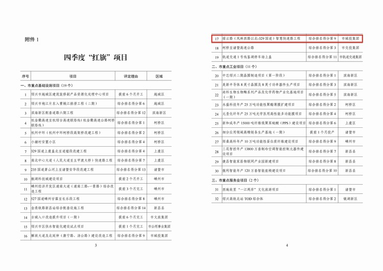 【概要描述】近日,紹興市重點(diǎn)建設(shè)項(xiàng)目爭先創(chuàng)優(yōu)立功競賽活動(dòng)四季度“紅旗”項(xiàng)目評(píng)定情況通報(bào)發(fā)布,我司參建的綠云路(鳳林西路以北-329 國道)智慧快速路工程獲“紅旗”項(xiàng)目,在全市497個(gè)市重點(diǎn)項(xiàng)目中脫穎而出,綜合排名第9。