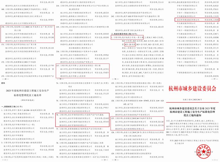 【概要描述】近日,2023年度杭州市建設(shè)工程施工安全生產(chǎn)標(biāo)準(zhǔn)化管理優(yōu)良工地名單公布,第三工程公司杭州市第七人民醫(yī)院浙西院區(qū)一期工程、浙江宇視科技有限公司安防產(chǎn)品產(chǎn)業(yè)化基地、余政儲(chǔ)出【2019】60號(hào)地塊開發(fā)項(xiàng)目、杭錢塘工出(2020)14號(hào)地塊工業(yè)廠房(標(biāo)準(zhǔn)廠房)工程和杭州地鐵3號(hào)線一期工程小和山停車場(chǎng)SG3-20標(biāo)段五個(gè)項(xiàng)目獲此殊榮。