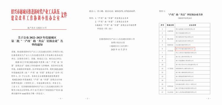 11月27日,越城區(qū)推進(jìn)新時(shí)代產(chǎn)業(yè)工人隊(duì)伍建設(shè)改革工作協(xié)調(diào)小組辦公室公布了2022-2023年度越城區(qū)第二批產(chǎn)改助共富星級(jí)企業(yè),我司榮獲“產(chǎn)改”助“共富”四星級(jí)企業(yè)。